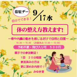 常駐デーにて「訪問施術のみゆき堂 宮澤」が身体の整え方を教えます!