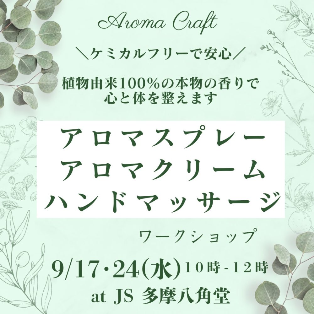 常駐デーにて「アロマスプレー・クリーム・ハンドマッサージワークショップ」開催!